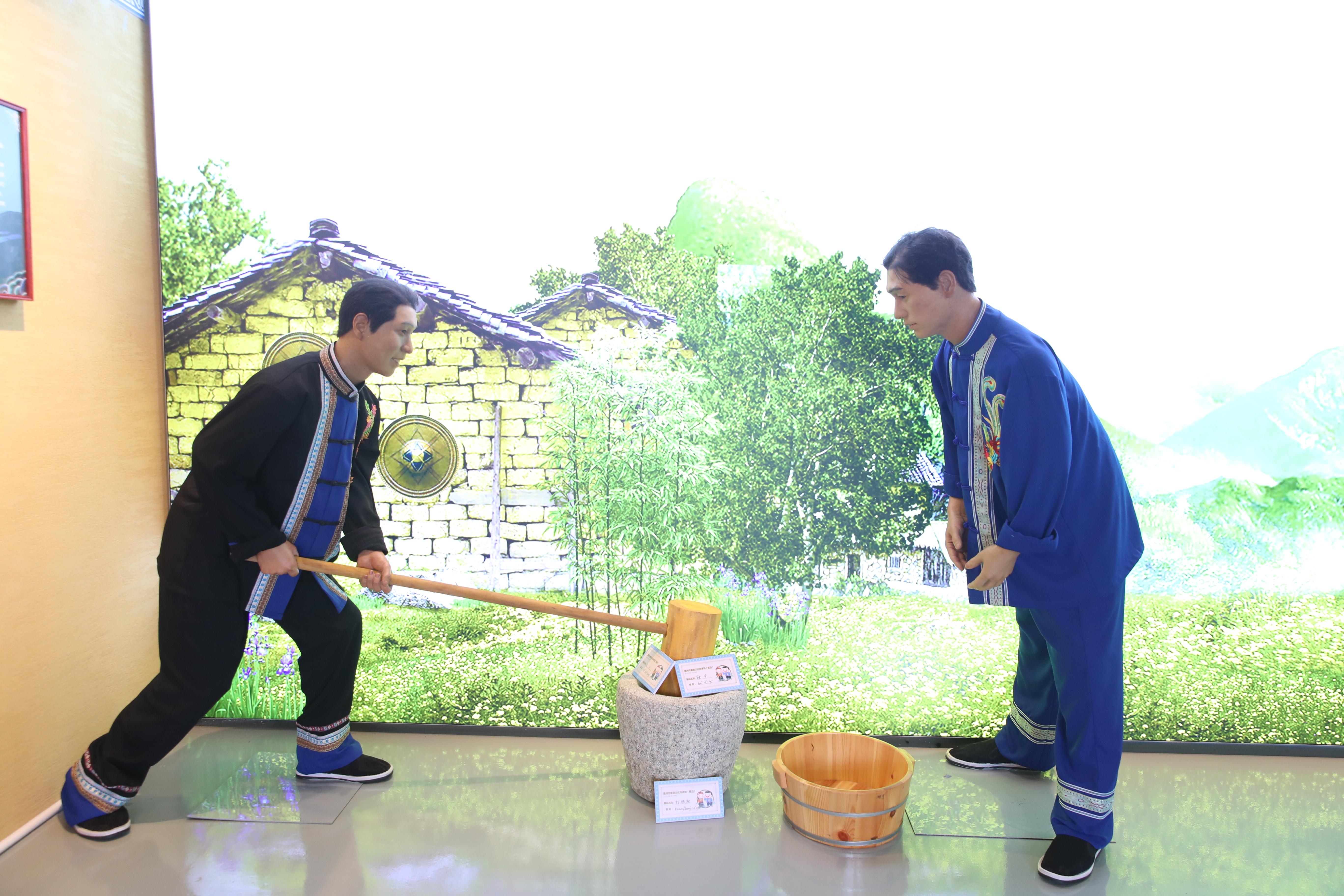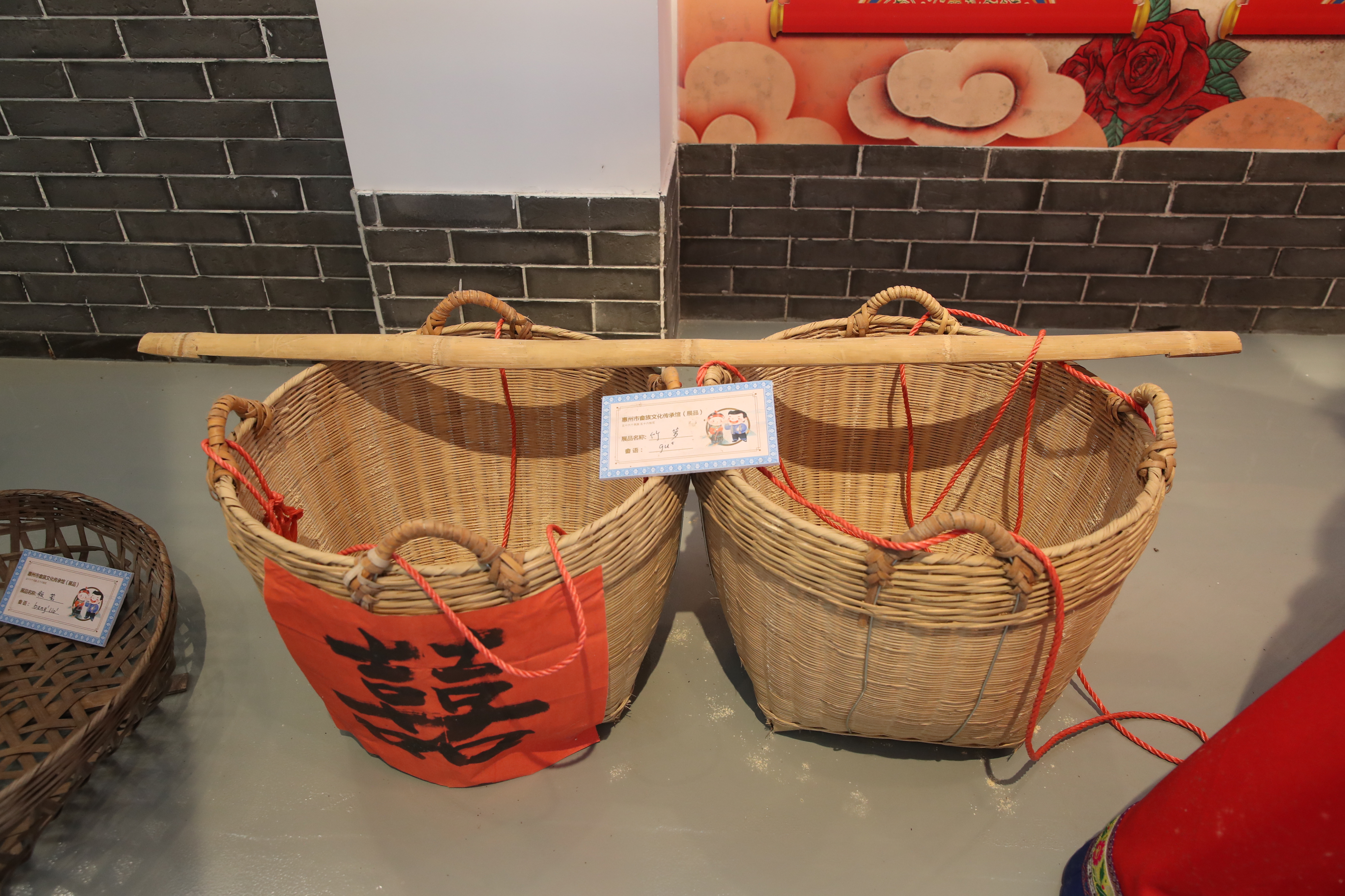 畬族文化傳承館二樓展示了從村里各家各戶收集而來的“老物件”,有竹籃、簸箕、鋤頭、秧鏟、鐵耙、禾叉等,真實還原畬族人磨稻谷等勞作場景。