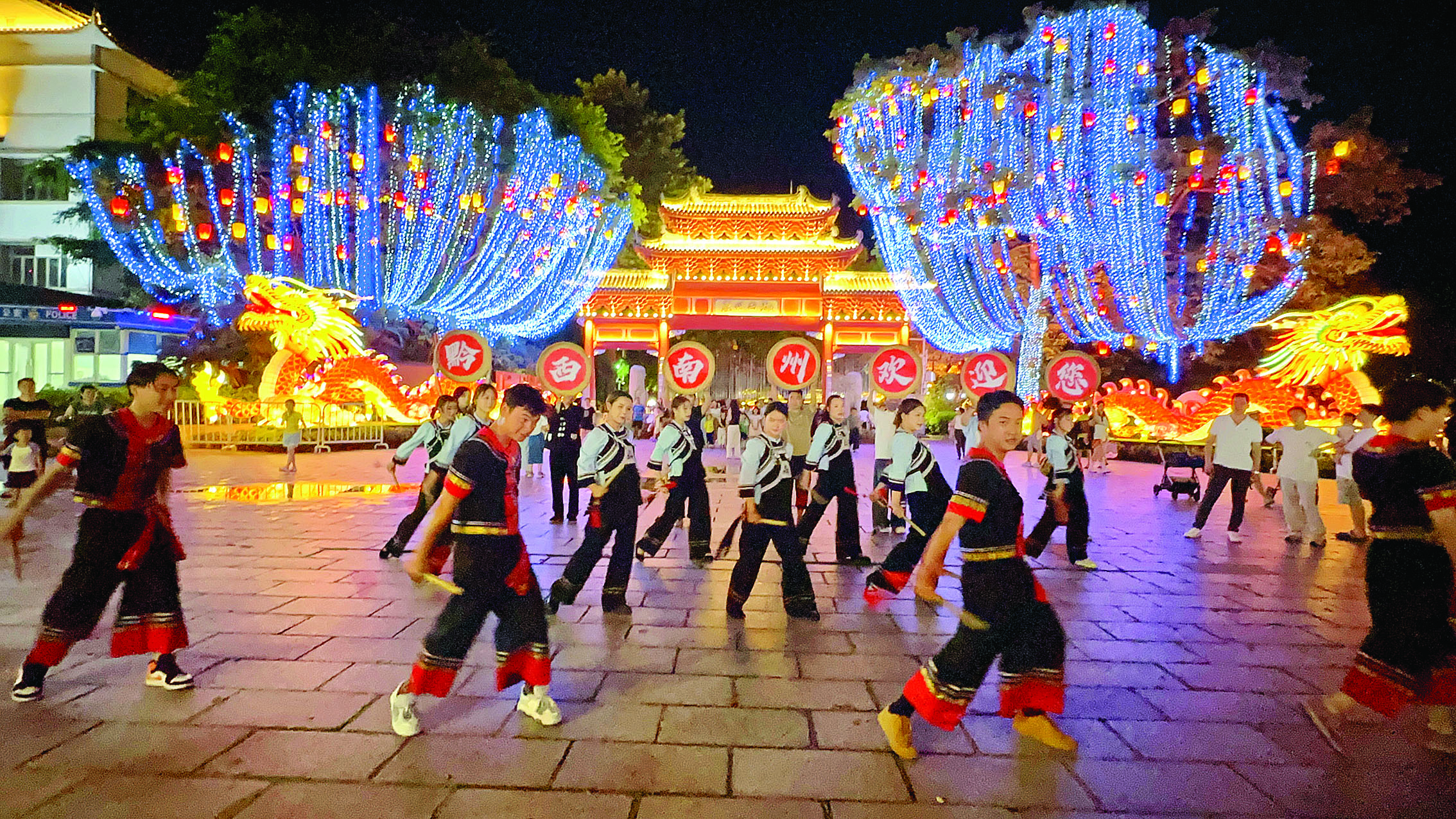 在惠州西湖舉行的黔西南民族歌舞表演;葜萑請(bào)記者譚琳 肖泓 通訊員黔西南州文體廣旅局 攝