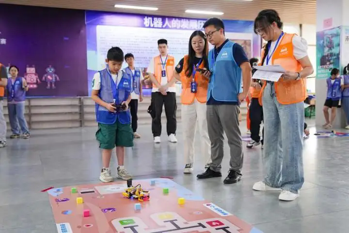 思考應(yīng)對策略、仔細(xì)調(diào)試設(shè)備、精準(zhǔn)控制時間……賽場上,選手們?nèi)褙炞⑼度氡荣,展示自己的?chuàng)造成果,享受科學(xué)競技的樂趣。在“探索未來”創(chuàng)意智造和元控智聯(lián)互通挑戰(zhàn)賽B方案兩個賽項中,參賽者需要自行設(shè)計出可物物通信的智能設(shè)備,并讓智能設(shè)備在賽場上完成特定任務(wù),考驗的是選手的邏輯思考、策略協(xié)作和問題解決能力。虛擬仿真通信賽項以在虛擬仿真通信場景中的機(jī)器人操作為主題,旨在培養(yǎng)學(xué)生的創(chuàng)新精神、動手能力和編程能力。