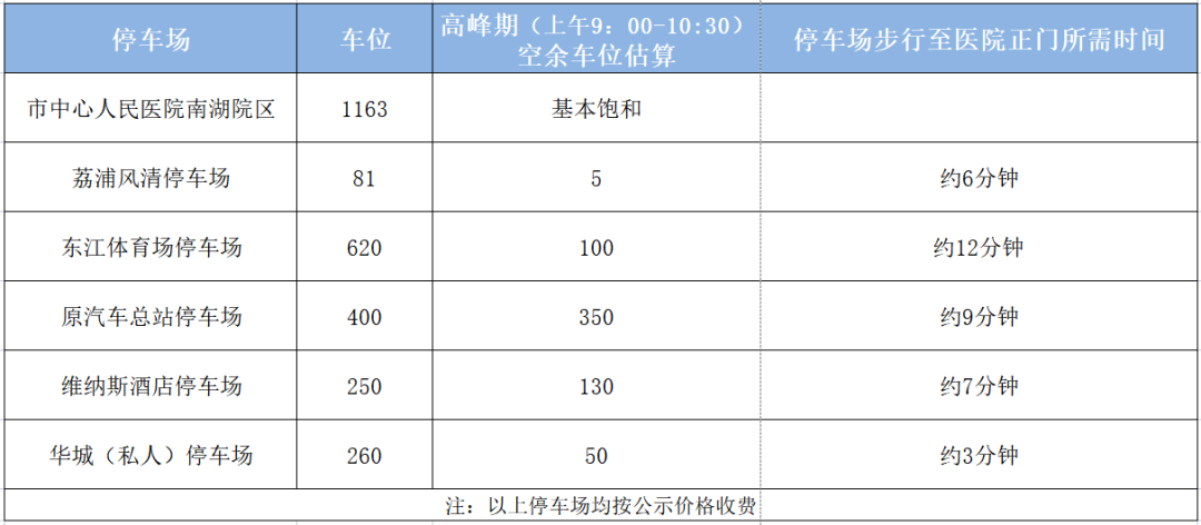 目前醫(yī)院內(nèi)及附近停車(chē)場(chǎng)的車(chē)位和收費(fèi)情況如下:
