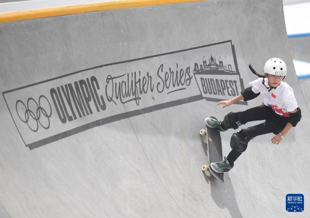 6月20日,中國選手鄭好好在巴黎奧運會資格系列賽布達佩斯站滑板女子碗池預(yù)賽中。新華社記者 賀燦鈴 攝