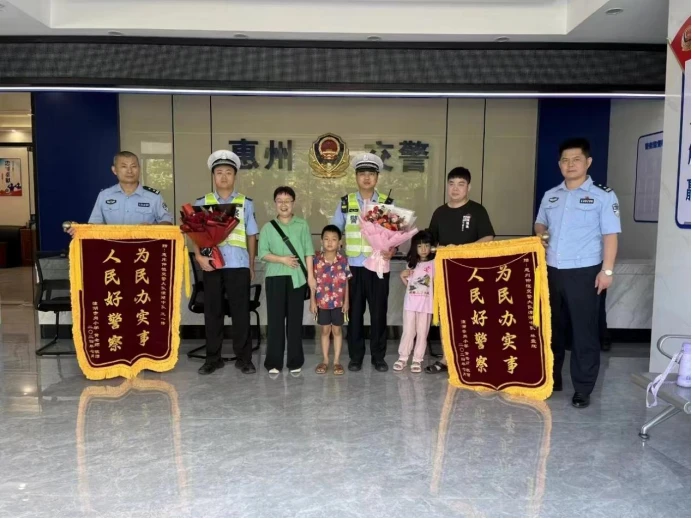“多虧兩位同志,真是太感謝你們了!”近日,群眾黃女士帶著兩面印著“為民辦實(shí)事,人民好警察”的錦旗來(lái)到市公安局交警支隊(duì)仲愷大隊(duì)潼湖中隊(duì),當(dāng)面向警員表示由衷感謝。