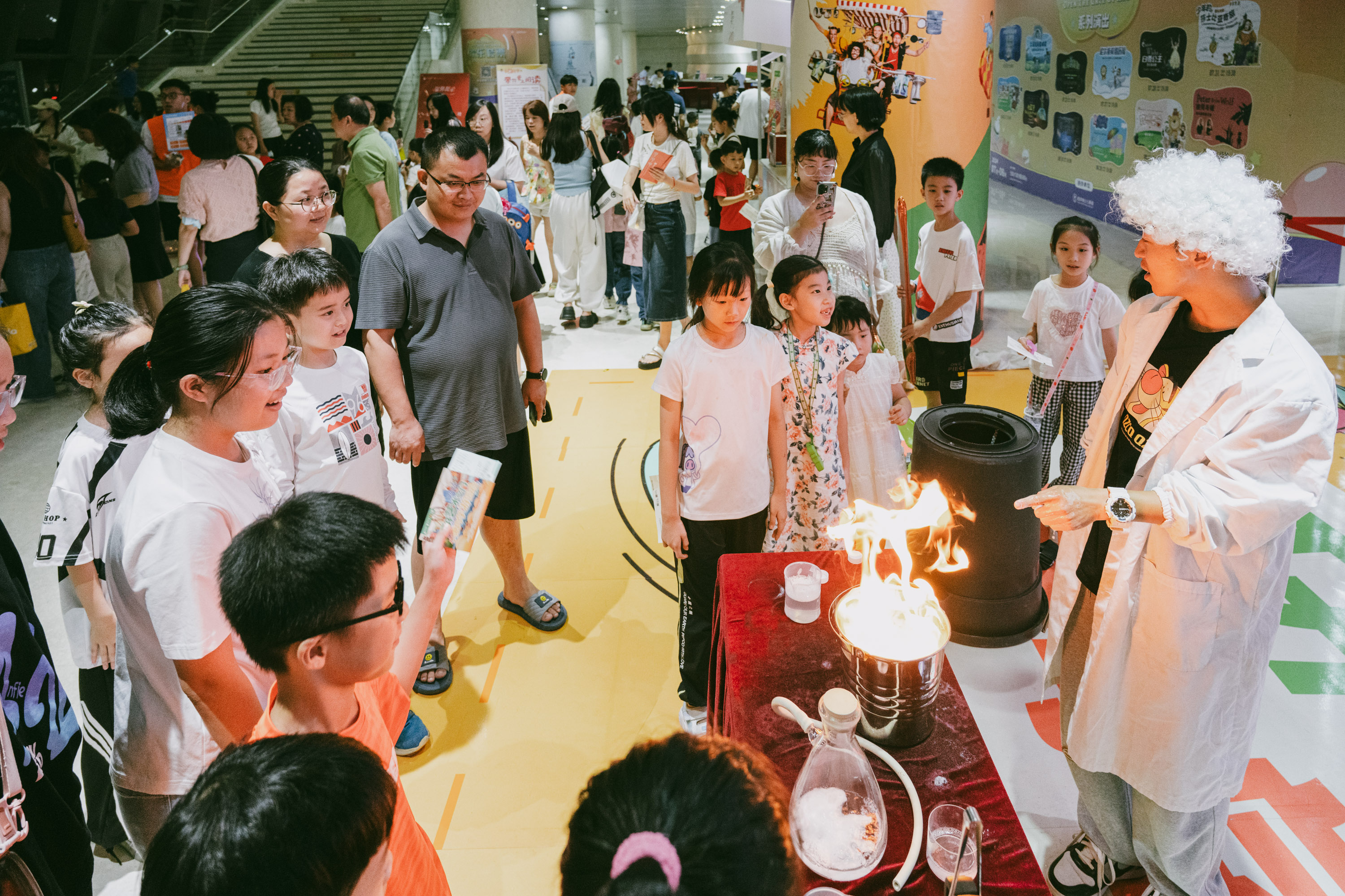 當(dāng)天,《小惠同學(xué)》讀者見面會、文藝表演、科學(xué)魔法秀等精彩節(jié)目輪番上演,如同一場場絢麗多彩的文化盛宴。小讀者們在讀者見面會上接觸報(bào)刊采編知識,親身了解“小惠誕生過程”;文藝表演展現(xiàn)出小同學(xué)們的多才多藝;科學(xué)魔法秀上,神奇的科學(xué)實(shí)驗(yàn)激發(fā)同學(xué)們的探索欲。游戲互動區(qū)更是充滿了歡聲笑語,小朋友憑《小惠同學(xué)》校園周刊上的門票或者當(dāng)晚演出門票領(lǐng)取一張游戲闖關(guān)卡。其中,“白雪紛飛”的夏日泡泡池最受小朋友歡迎,“趣味飛盤”“乒乓球”“毽步如飛”“歡樂套圈圈”“花樣蹴鞠”“丟沙包”等闖關(guān)游戲樣樣精彩,還能參與激動人心的抽獎贏取驚喜大獎。