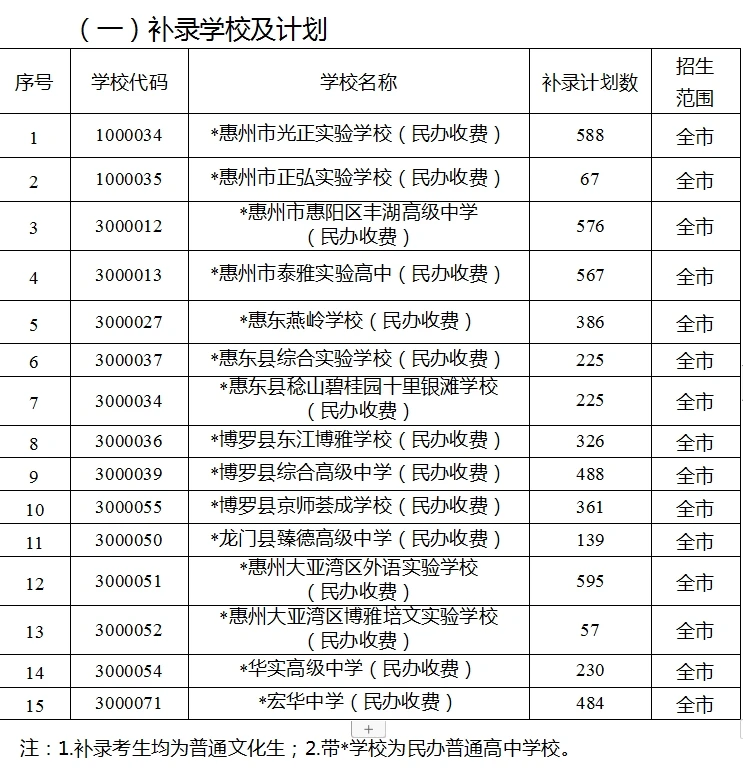 根據(jù)全市普通高中學(xué)校錄取結(jié)果,現(xiàn)就補(bǔ)錄學(xué)校及計(jì)劃公告如下: