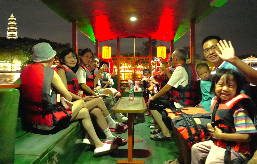 60歲的張碧全來自陜西西安,暑期不用待在老家?guī)O子孫女,于是過來探望在惠州工作的女兒!盎葜莪h(huán)境好、空氣好,人也很文明,衛(wèi)生狀況很好。這次夜游惠州西湖,讓我更喜愛惠州這座千年古城!睆埍倘f。