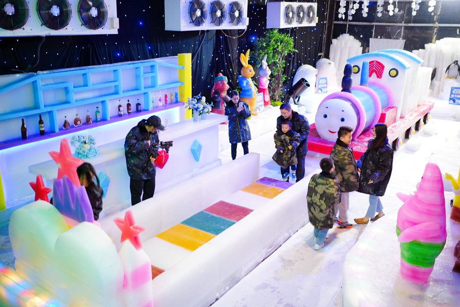 “外面30多度,里面零下10度,一走進(jìn)去,就是冰火兩重天的感覺。”市民秦先生和妻子帶著兩個孩子在里面玩了半個小時,“凍得很,但也真過癮,出來之后感覺身上的暑氣都沒了!