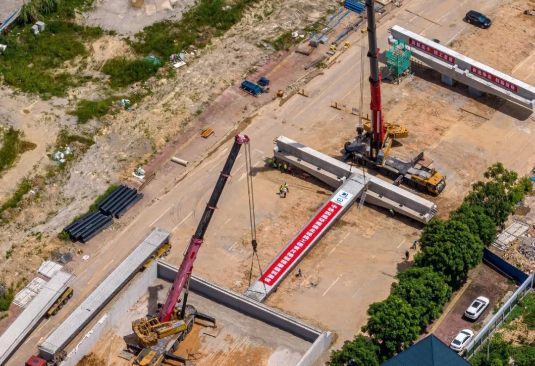 日前,環(huán)莞路北延線工程SG01標(biāo)段首片預(yù)制箱梁在東莞市企石鎮(zhèn)成功架設(shè),標(biāo)志著項(xiàng)目正式進(jìn)入橋梁工程上部結(jié)構(gòu)施工階段。