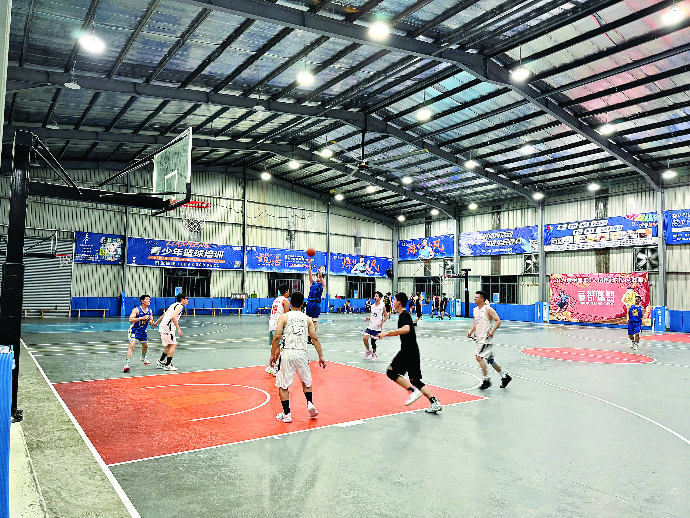 運動愛好者在室內(nèi)籃球館揮灑汗水。惠州日報記者馮麗均 邱若蓉 攝