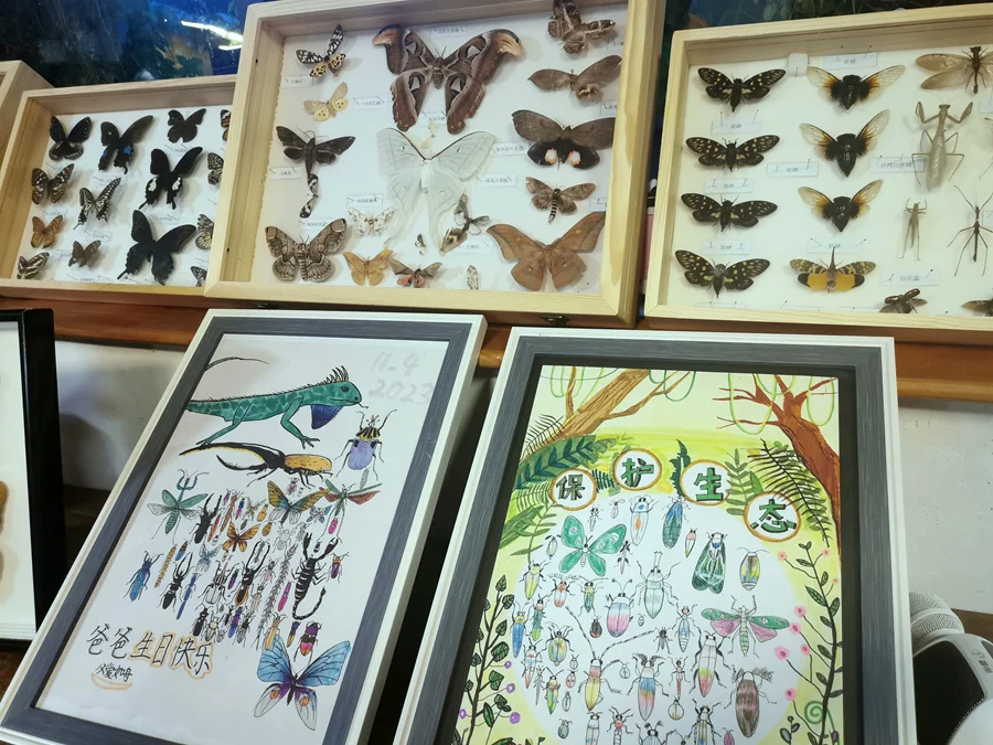 謝晨曦的昆蟲(chóng)標(biāo)本和畫(huà)作。