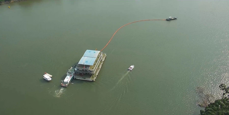 當(dāng)天,惠州東江海事處聯(lián)合惠州市生態(tài)環(huán)境局仲愷分局、惠州市生態(tài)環(huán)境局博羅分局、東莞市生態(tài)環(huán)境局橋頭分局、粵港供水有限公司開展應(yīng)急演習(xí)。此次演習(xí)模擬一艘工程船在惠州龍橋東江大橋上游附近水域由于操作不當(dāng),發(fā)生燃油泄漏事故,造成水質(zhì)污染,泵站緊急停機(jī)。因該輪燃油艙內(nèi)裝有柴油約2000升,污油水艙內(nèi)約有污油水100升,有持續(xù)泄漏風(fēng)險。