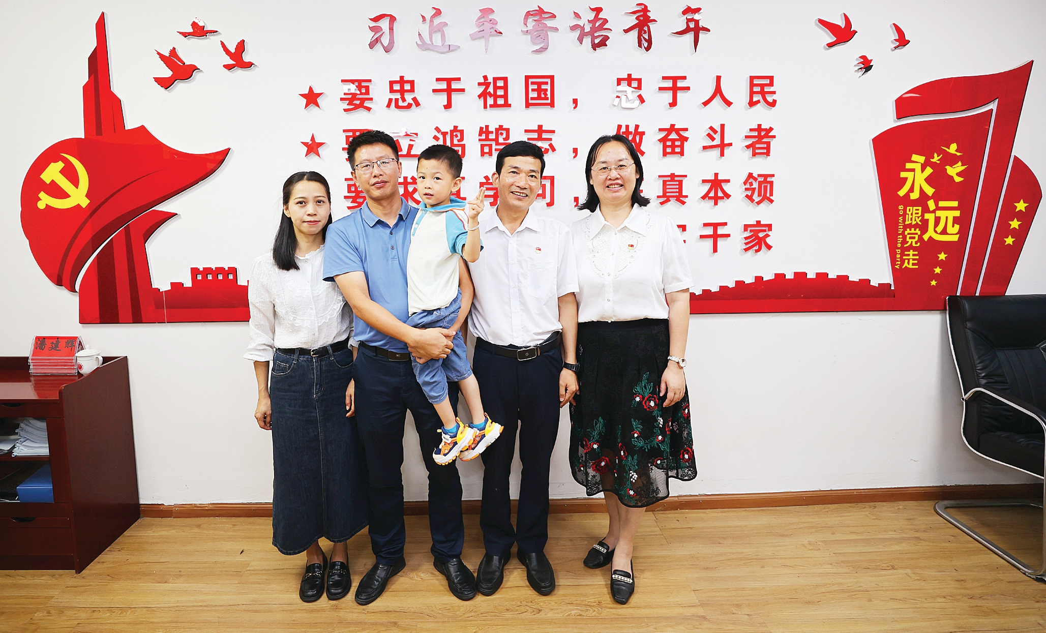 方海波和何玲瓊一家三口以及林永水和曾素蕾夫妻。
