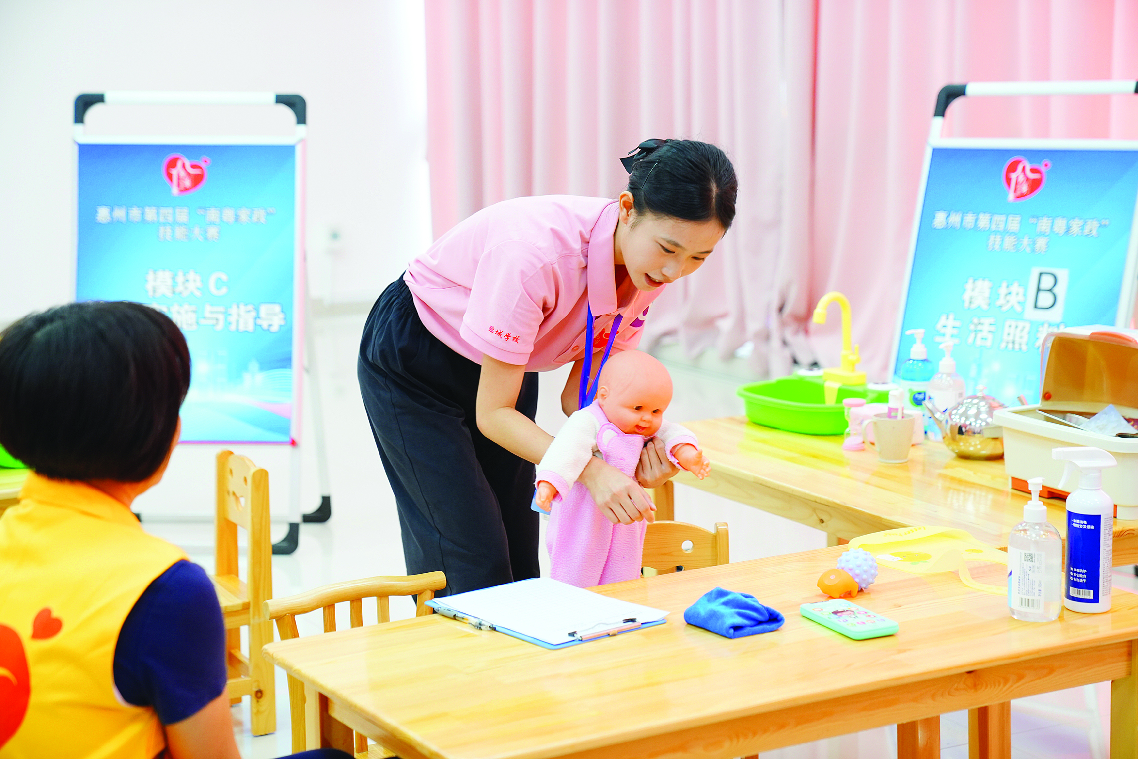 7月25日,惠州市第四屆“南粵家政”技能大賽決賽在惠州市南粵家政綜合服務(wù)示范基地舉行,60名家政能手同臺(tái)競(jìng)技“比武秀藝”。本次大賽以“鑄南粵匠心·展家政風(fēng)采”為主題,由市人社局、市民政局、市總工會(huì)、市婦聯(lián)主辦,旨在有效整合資源,發(fā)揮以賽促學(xué)、以賽促教作用,為選手切磋技能、展示技能搭建擂臺(tái),匯聚各方力量,共同推進(jìn)我市“南粵家政”工程高質(zhì)量發(fā)展。