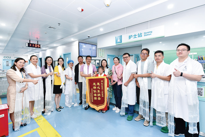 白瑪康珠一家給醫(yī)護(hù)團(tuán)隊(duì)送上錦旗;葜菔械谝蝗嗣襻t(yī)院供圖