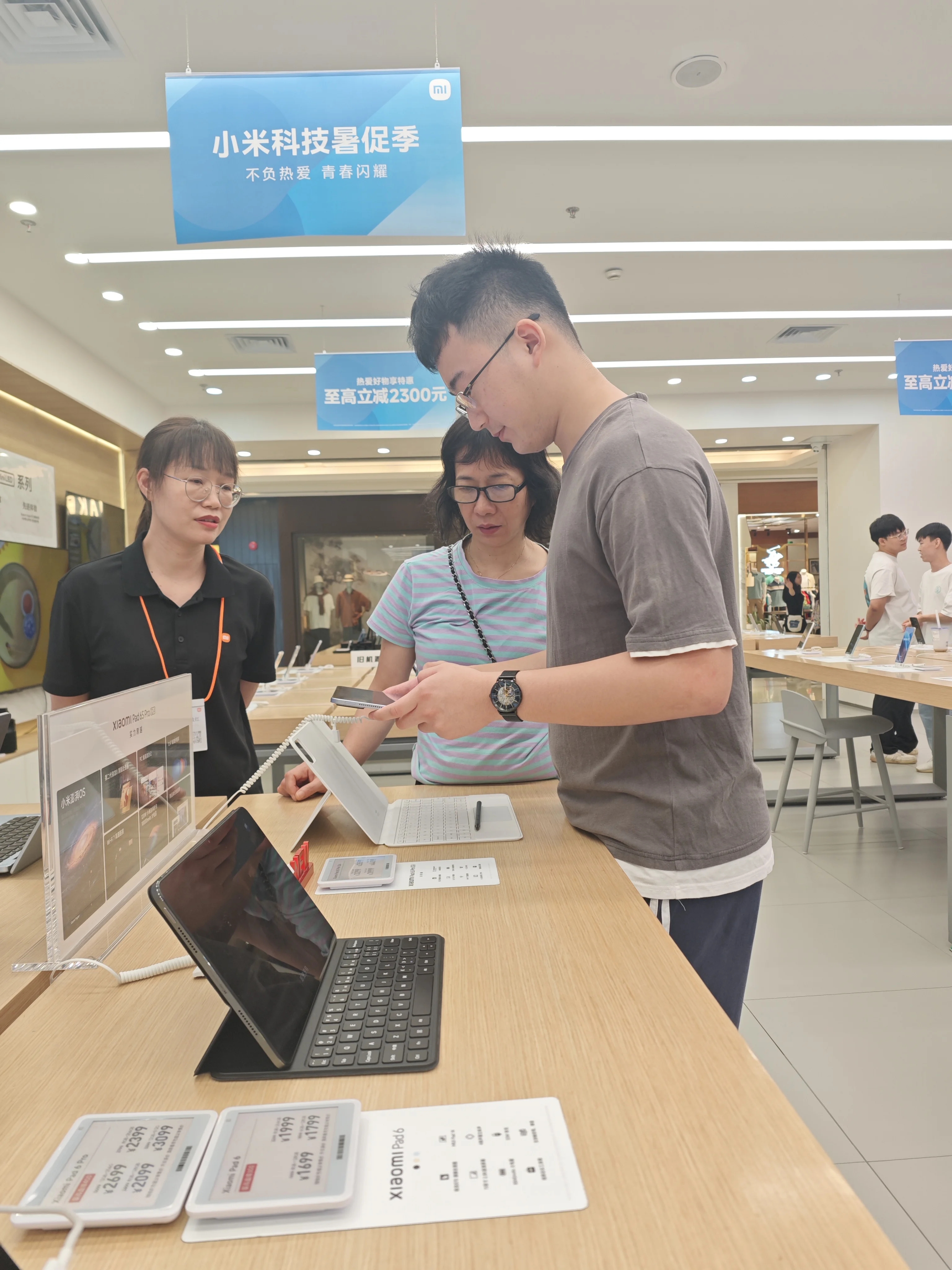 7月中旬,惠州華貿(mào)小米之家不少剛畢業(yè)的學(xué)生前來(lái)挑選心儀的手機(jī)。