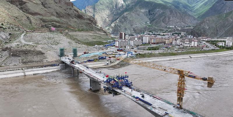 8月1日,朗縣惠州大橋主橋成功合龍。圖片由惠州援藏工作組提供