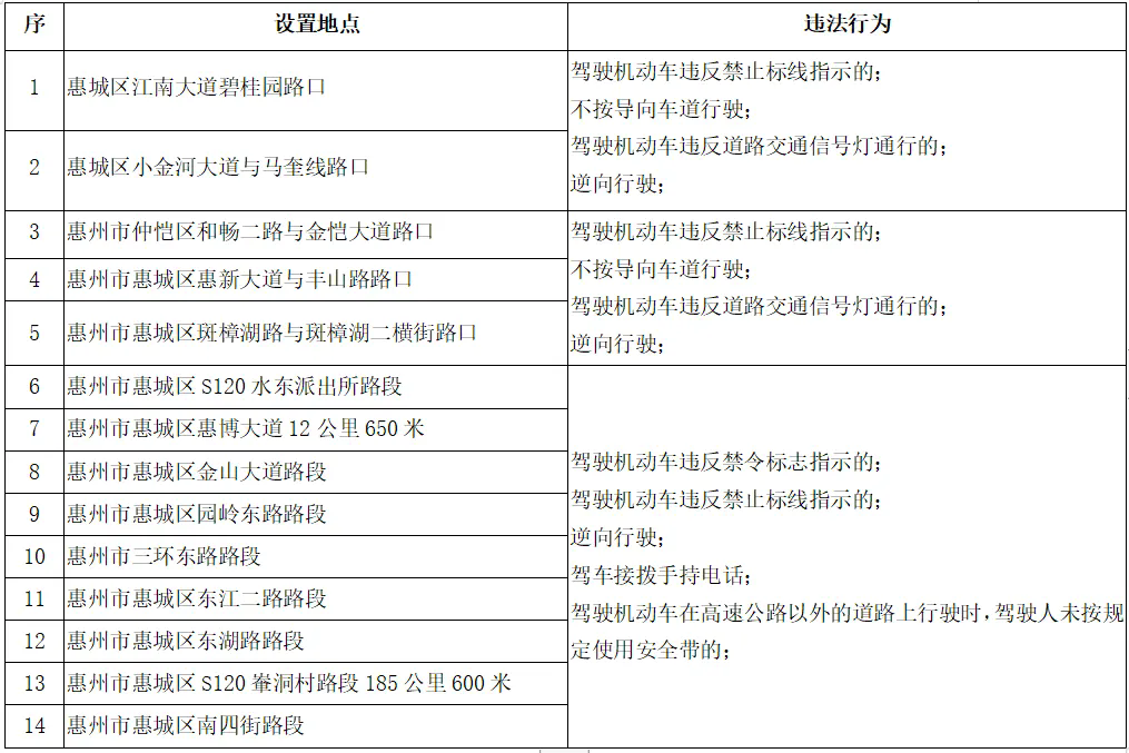 根據(jù)《中華人民共和國行政處罰法》、《道路交通安全違法行為處理程序規(guī)定》相關(guān)規(guī)定,惠州市公安機關(guān)交通管理部門在原有監(jiān)控設備公布基礎上,對部分固定式交通技術(shù)監(jiān)控設備設置地點向社會公布。