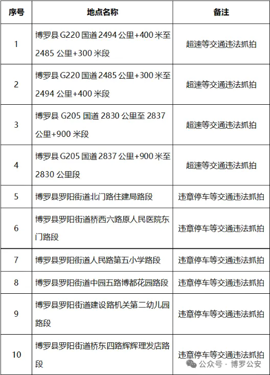 根據(jù)《中華人民共和國行政處罰法》第四十一條及《道路交通安全違法行為處理程序規(guī)定》第十六條關(guān)于“固定式交通技術(shù)監(jiān)控設備地點應向社會公布”的規(guī)定,博羅縣轄區(qū)范圍內(nèi)近期新增的視頻監(jiān)控點位公布: