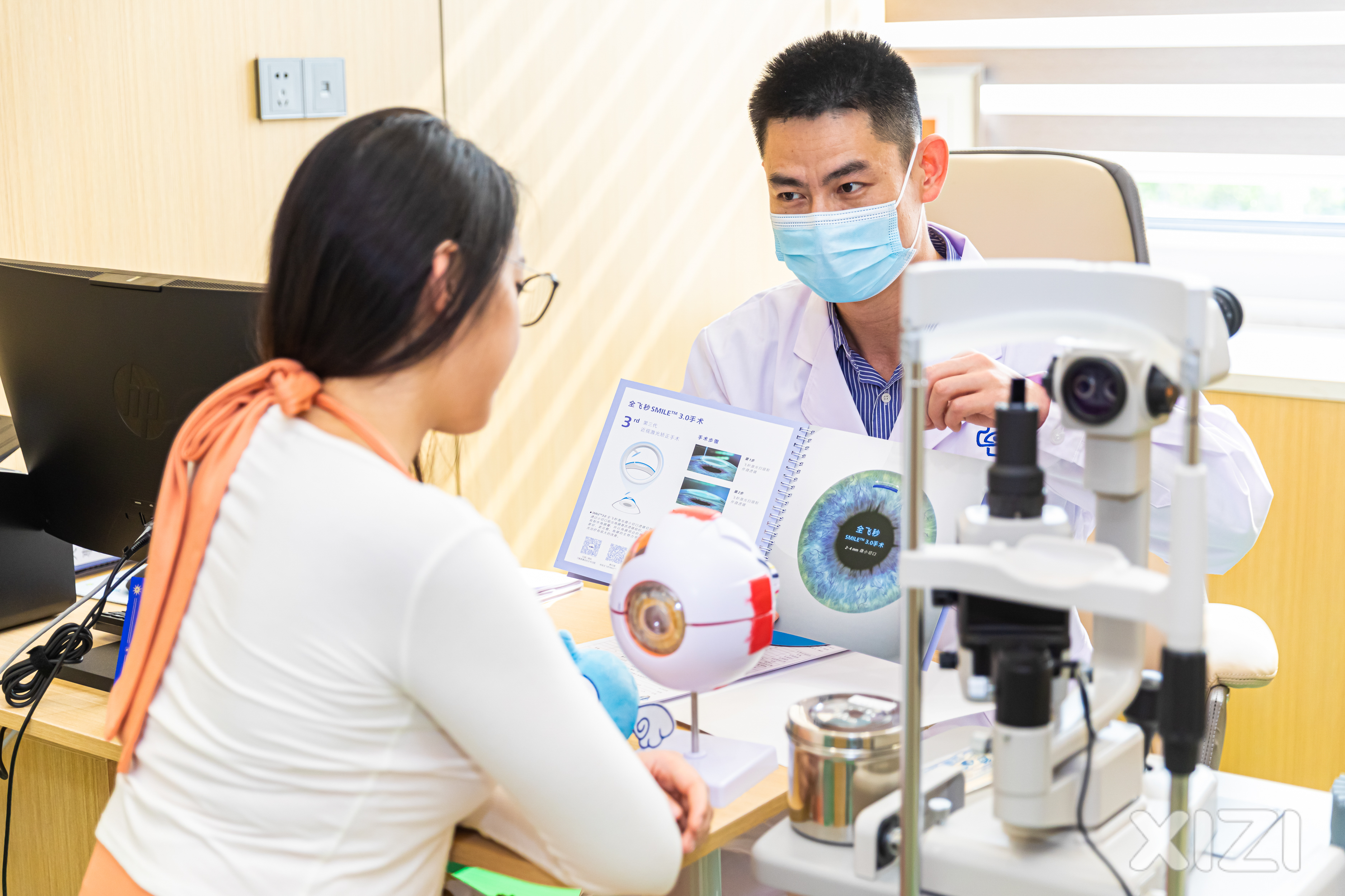 惠州明康眼科醫(yī)院副院長(zhǎng)高穩(wěn)生向患者介紹摘鏡方案。