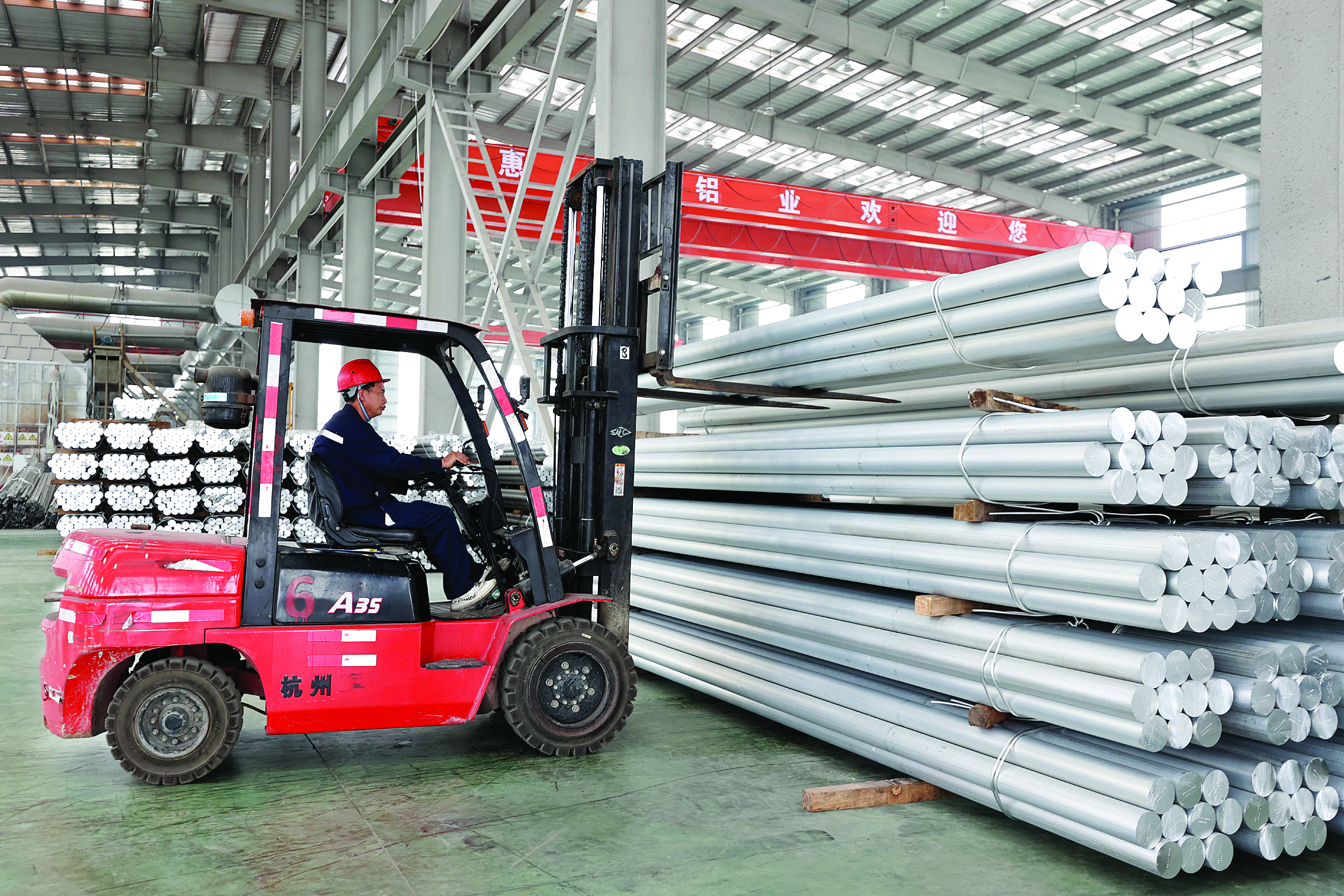 90%的鋁液+10%的再生鋁,經(jīng)過(guò)高溫熔煉、深井鑄造、鋸切處理等工序后,一根鋁棒就生成了。在貴州惠興再生資源科技有限公司生產(chǎn)車(chē)間內(nèi),工作人員用叉車(chē)將一捆捆鋁棒裝車(chē),準(zhǔn)備發(fā)往廣東。