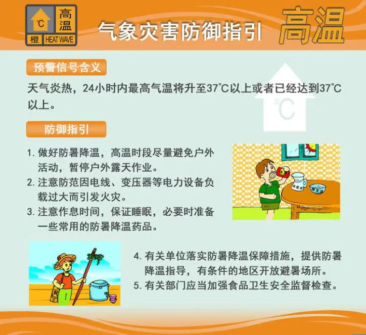 高溫黃色預警信號升級為橙色