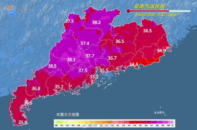 最高氣溫普遍介于35℃~37℃之間