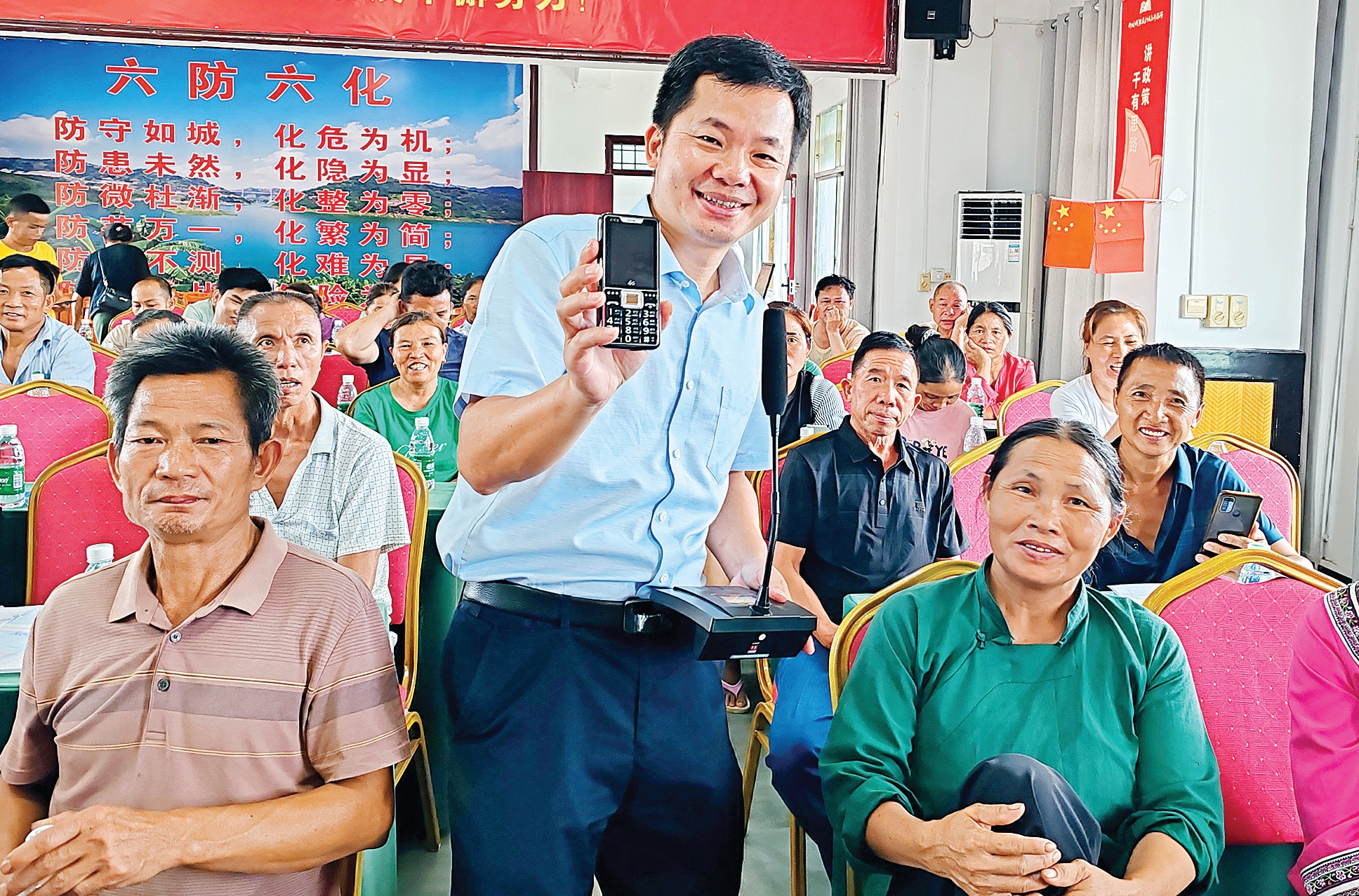 吳宇輝(中)給村民做業(yè)務(wù)培訓(xùn)。