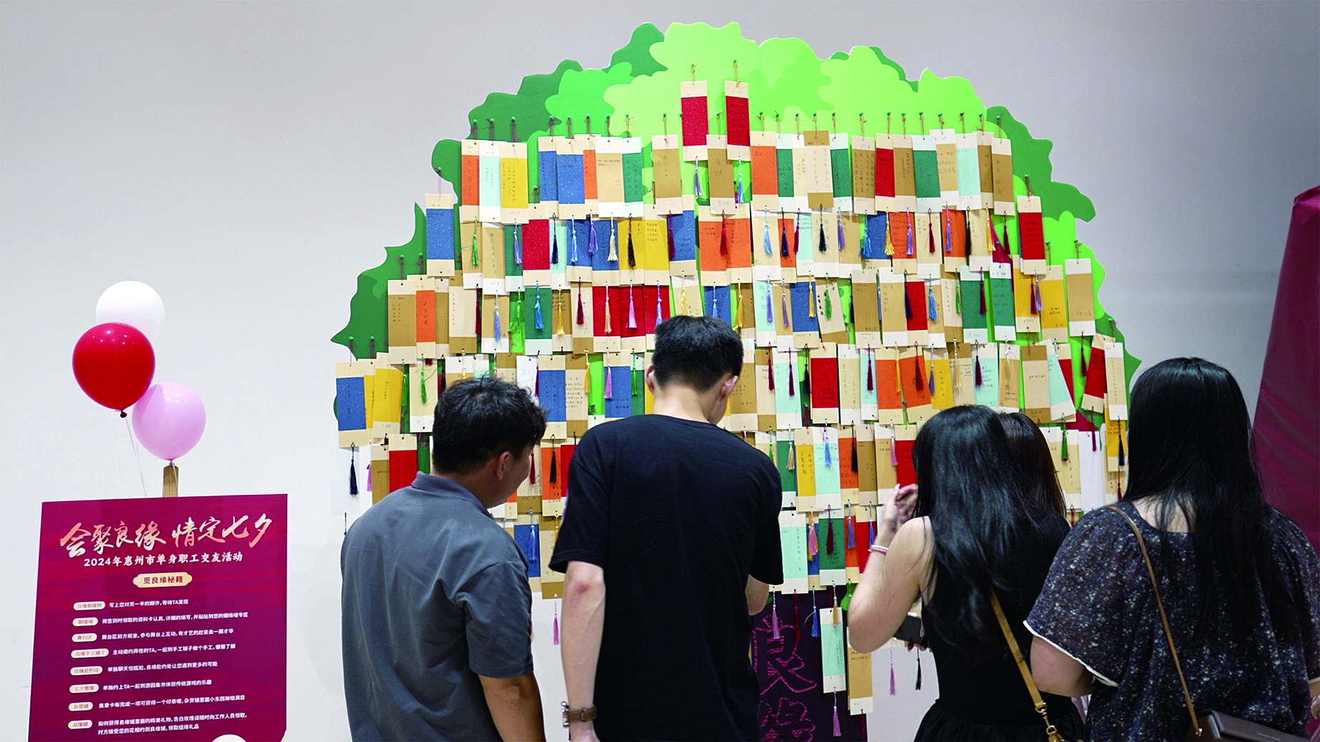 男女嘉賓在許愿“樹”前許下愿望。