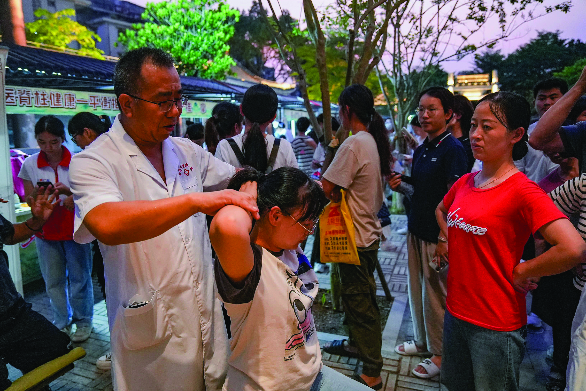 記者留意到,推拿、針灸、拔罐、刮痧等傳統(tǒng)中醫(yī)項目特別受歡迎,幾乎每個攤位前都排起了長龍;葜菔薪】滴幕瘏f(xié)會的中醫(yī)師黃選蓁一直忙個不停,為市民辨癥針灸。“我之前都是在白天開展義診的,沒想到夜晚也這么火爆!秉S選蓁說,這說明越來越多人認(rèn)可、信賴中醫(yī),“‘健康夜市’不僅可以讓市民直接體驗中醫(yī)傳統(tǒng)項目,也是傳播和弘揚中醫(yī)藥文化的新載體!