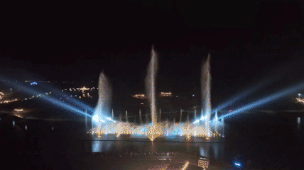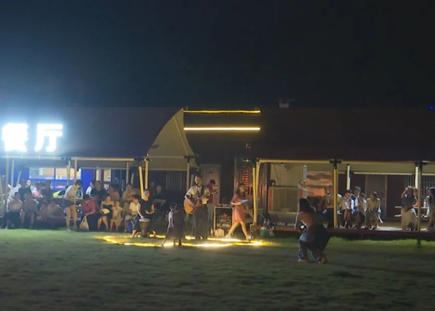 晚上 8 點,音樂噴泉和燈光秀在鹿鷹園準時上演,噴灑而出的水霧,還為周邊游客帶來了絲絲清涼。除了音樂噴泉和燈光秀,國家非遺項目打鐵花和來自龍門藍田鄉(xiāng)的省級非遺項目舞火狗也接連上演,其中圍繞篝火進行的舞火狗活動還會帶動游客一起加入狂歡。