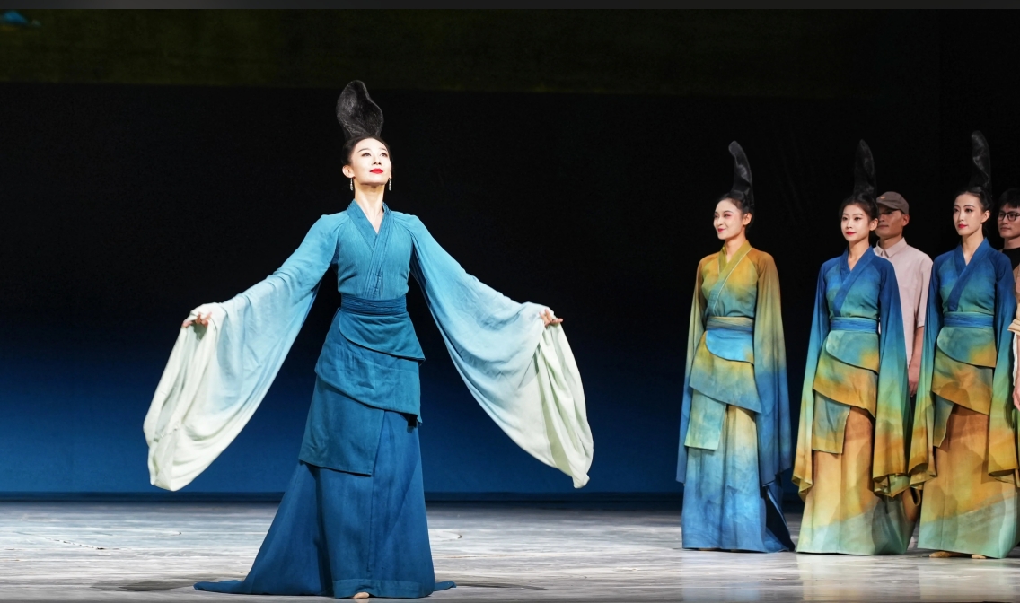 “‘青綠’像是時空的連接者。連接起了宋代的希孟以及現(xiàn)代展卷人,通過現(xiàn)代人的視角,讓觀眾去沉浸式地走進(jìn)我們的中國畫中這幅千里江山圖當(dāng)中!泵蠎c旸表示,作為演繹者,她相信能夠舞臺具有情感等多維度傳遞的功能!吨淮饲嗑G》屬于傳統(tǒng)寫意類的作品,劇中沒有運用特別多的戲劇矛盾沖突,而是利用情景設(shè)計,讓觀眾循著舞者的演繹,最終臺上臺下達(dá)成情感共鳴!拔矣X得這是舞者與觀眾之間達(dá)到一種惺惺相惜的默契,這種默契來源于文化的歸屬感與認(rèn)同感!泵蠎c旸說。