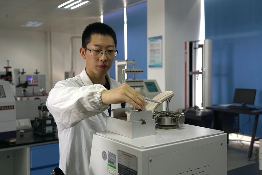 這是一家2022年才在惠東開(kāi)業(yè)的鞋廠(chǎng),引進(jìn)了溫州一家鞋企的橡塑發(fā)泡材料用于生產(chǎn)坡跟女鞋等,相比傳統(tǒng)的厚鞋底,這種材料制作的鞋底輕便不累腳,可以把女鞋穿出運(yùn)動(dòng)鞋的腳感,廣受消費(fèi)者青睞!拔覀兊目蛻(hù)對(duì)品質(zhì)管控要求高,要出一份檢測(cè)報(bào)告給他,主要檢測(cè)耐磨性和環(huán)保相關(guān)指標(biāo)。”該公司副總經(jīng)理黃惠標(biāo)表示,在國(guó)家鞋檢中心投用前,公司要檢測(cè)得把產(chǎn)品送到廣州或東莞,檢測(cè)一次要花幾百到上千元,時(shí)間和資金成本不少,家門(mén)口有了國(guó)家鞋檢中心后,不僅方便還免費(fèi),幫助企業(yè)降本提質(zhì)。