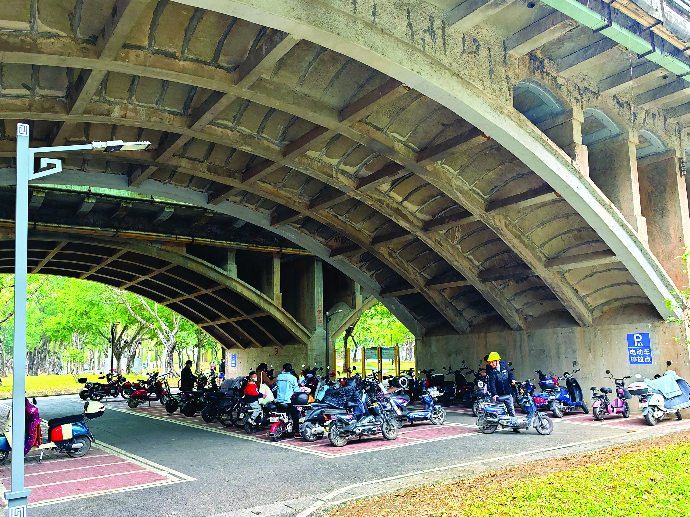 市民自覺把電動(dòng)自行車停放在公園指定區(qū)域。惠州東江圖片社供圖