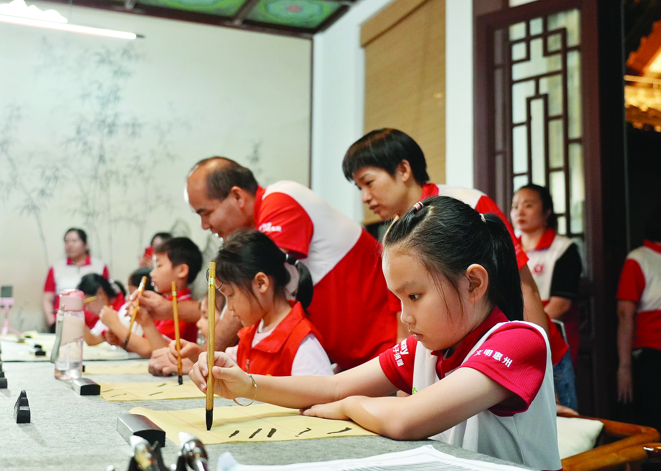 孩子們在豐湖書院公益書法班學(xué)習(xí)書法。惠州日報(bào)記者哈鵬 攝
