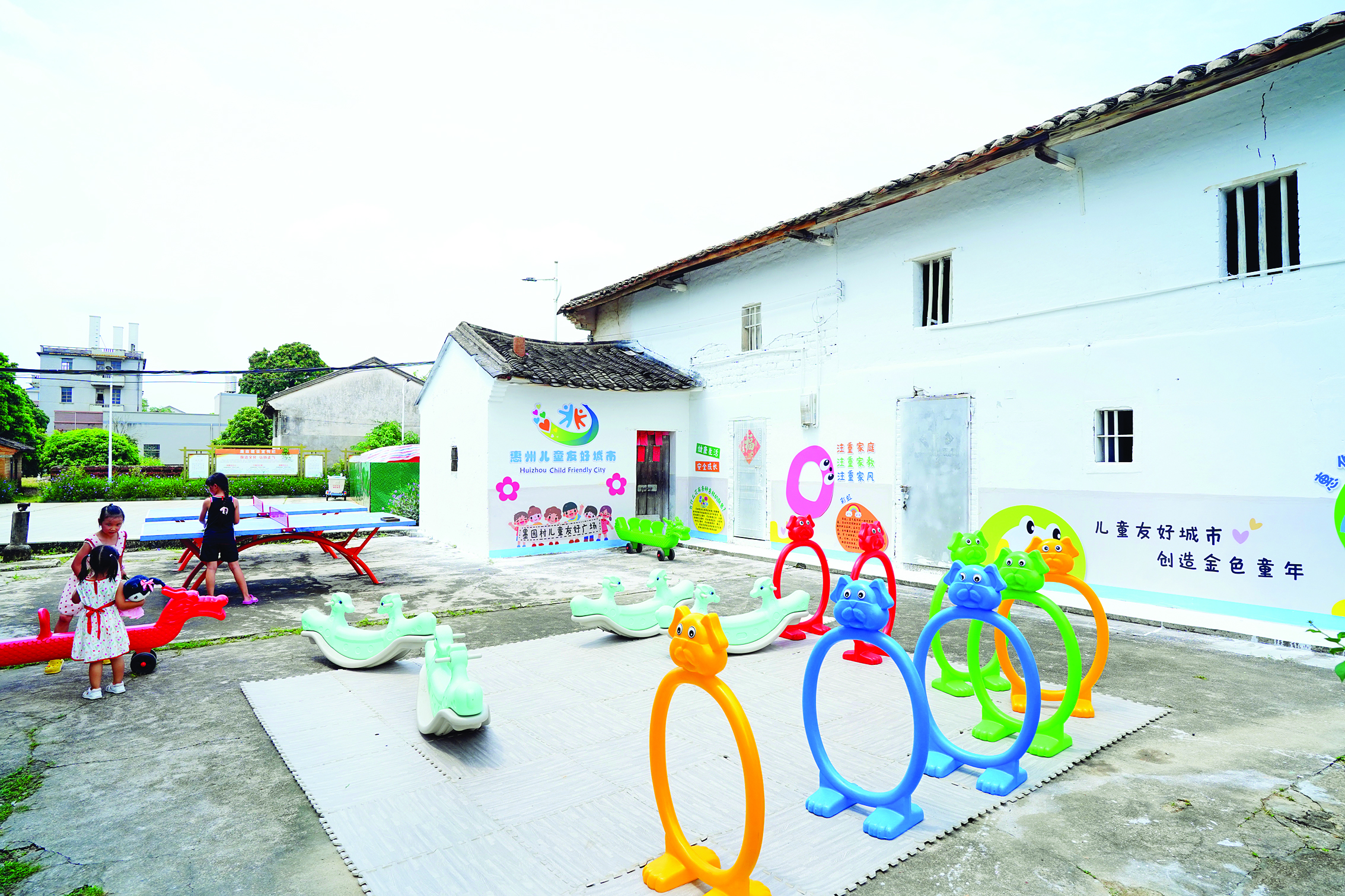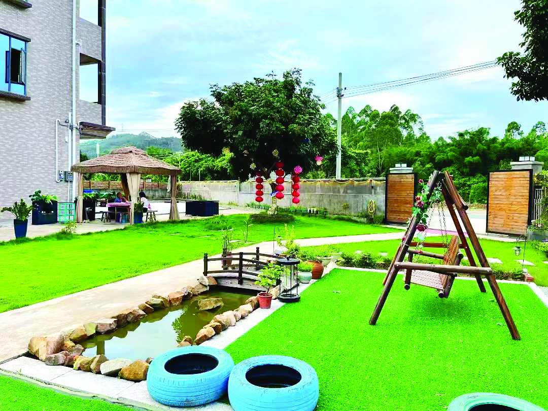 惠城區(qū)橫瀝鎮(zhèn)墨園村因地制宜設置兒童活動廣場。