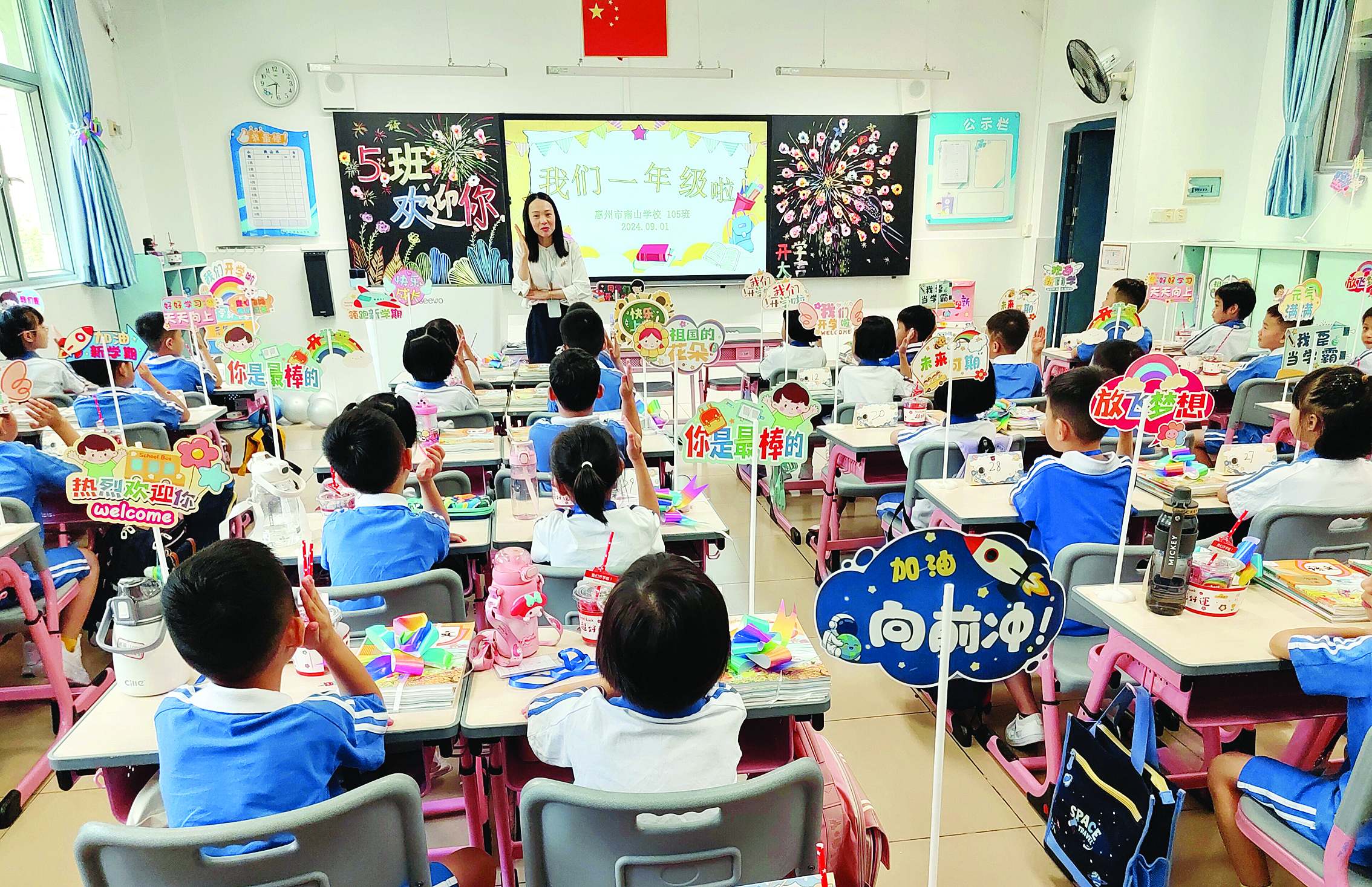 開學(xué)第一天,惠州市南山學(xué)校迎新儀式感滿滿。 惠州日?qǐng)?bào)記者葉麗莎 通訊員梁勇 攝