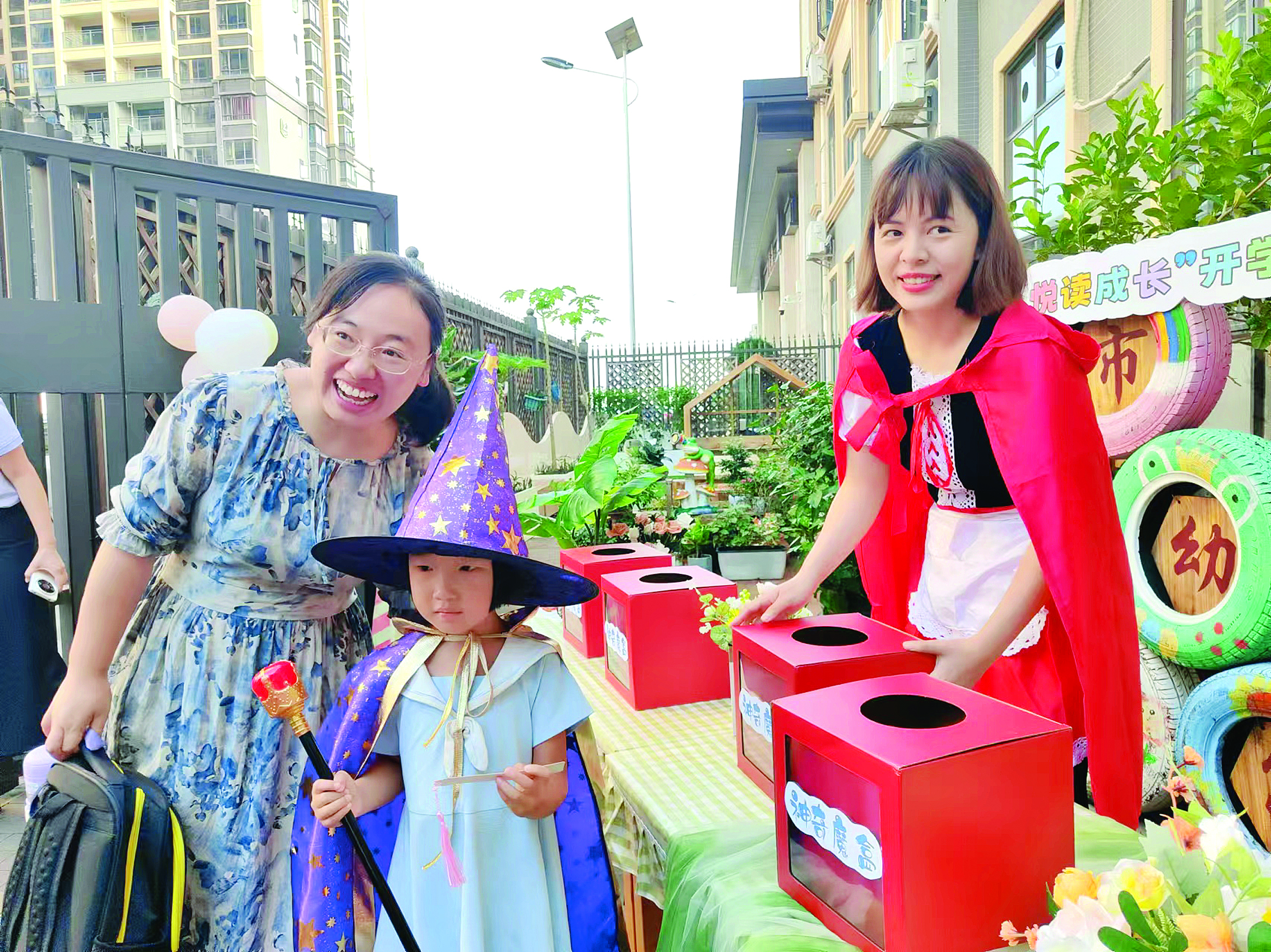 打扮成魔法師的幼兒園小朋友一臉可愛。