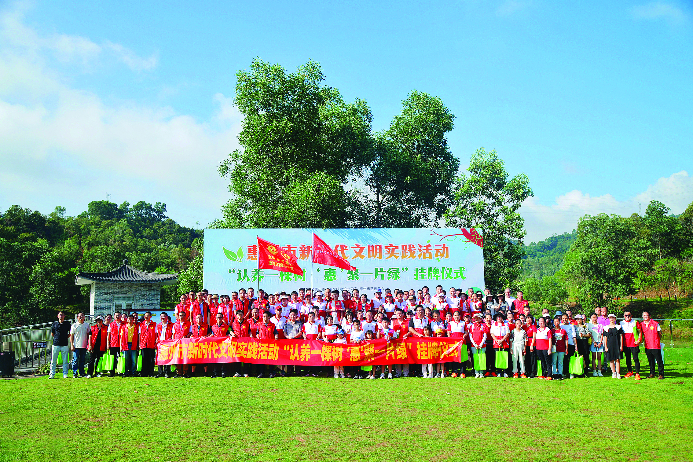 惠州市新時代文明實踐活動“認(rèn)養(yǎng)一棵樹 ‘惠’聚一片綠”掛牌儀式在市區(qū)桃花源景區(qū)舉行;葜萑請笥浾唿S鑫威 攝