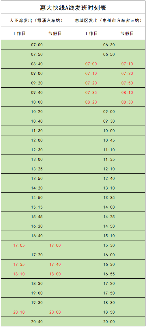 惠大快線A線(霞涌汽車站——惠州市汽車客運(yùn)站)