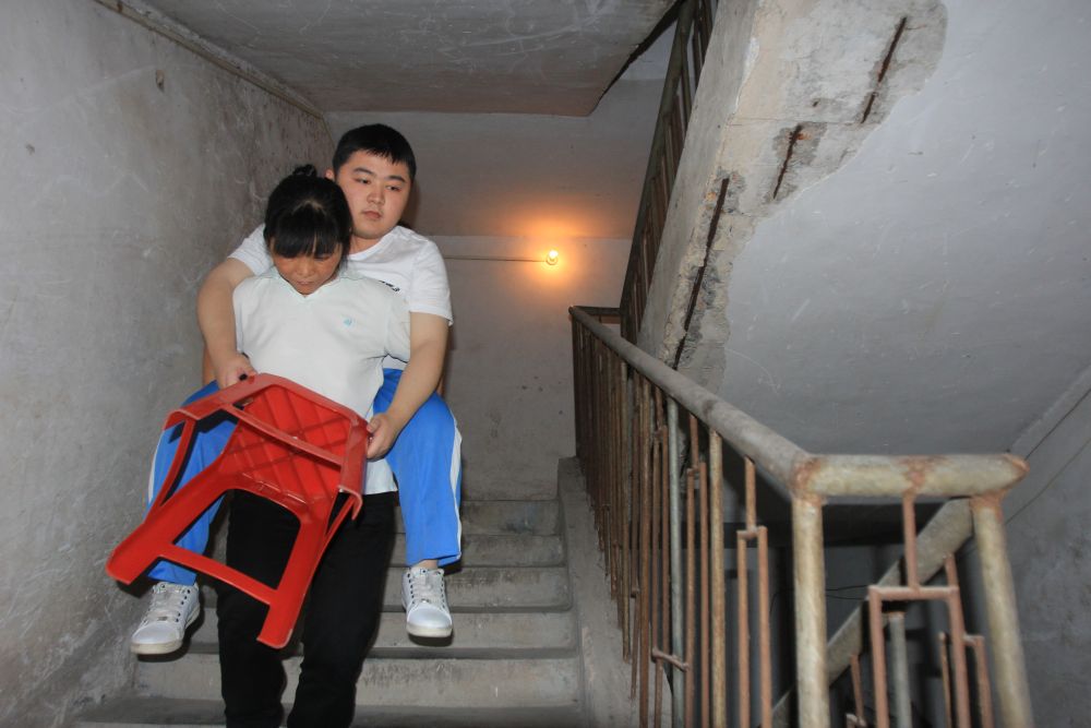 剛開始走不了路,陳斌自閉自卑!盀槲覀冇赂一钕聛砗脝?一關(guān)一關(guān)慢慢過!眿寢尷罨菰崎_導(dǎo)他,“讀書改變命運(yùn)。只要你想,我會(huì)一直背你上學(xué)!”走不了,媽媽成了他的腿;四肢無力,媽媽幫著挪動(dòng)按摩。