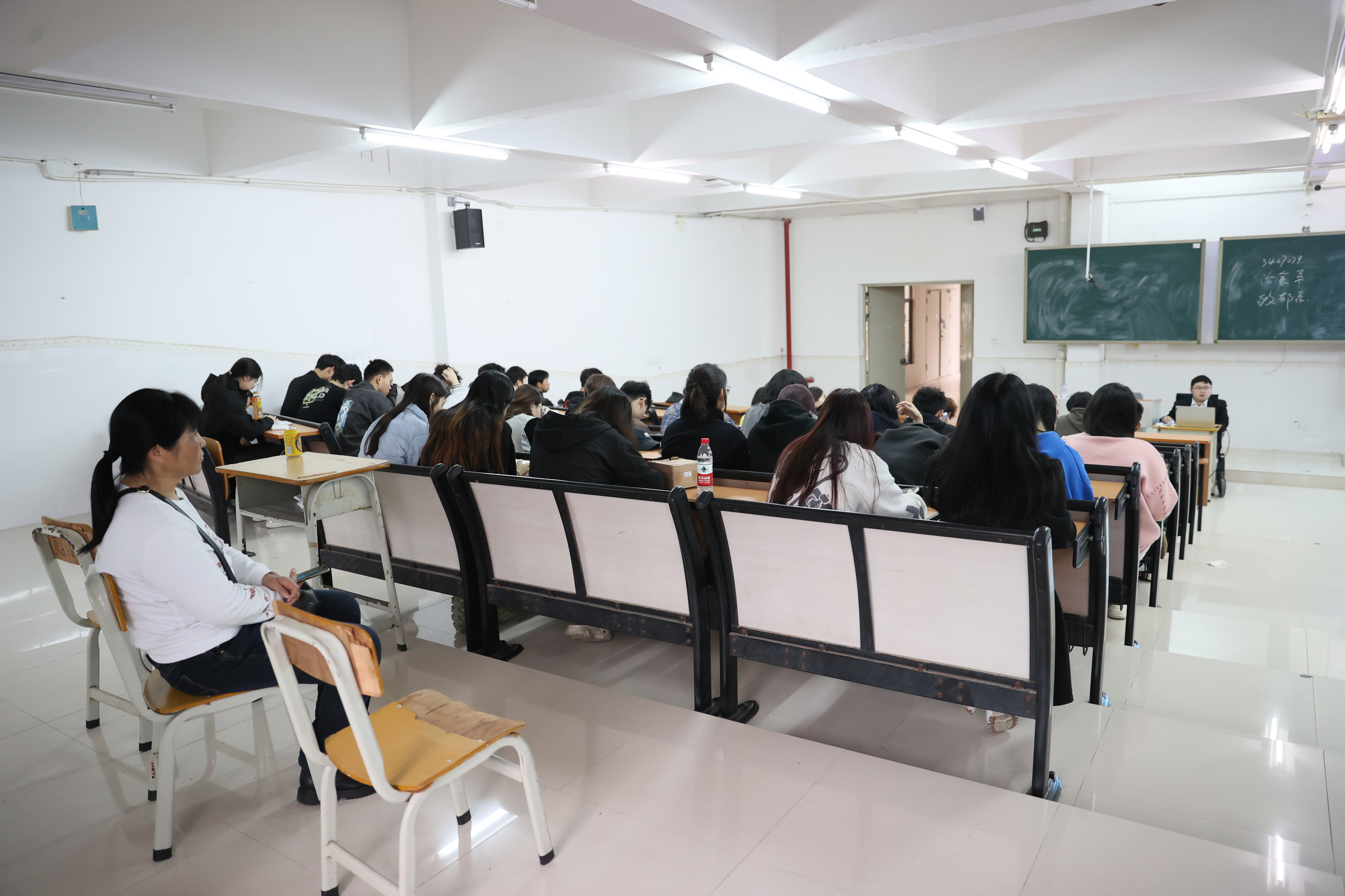 2024年3月13日,陳斌為惠州城市職業(yè)學(xué)院大一學(xué)生授課,李惠云靜靜守候在教室后面,課前課后準(zhǔn)備都由李惠云來(lái)完成。