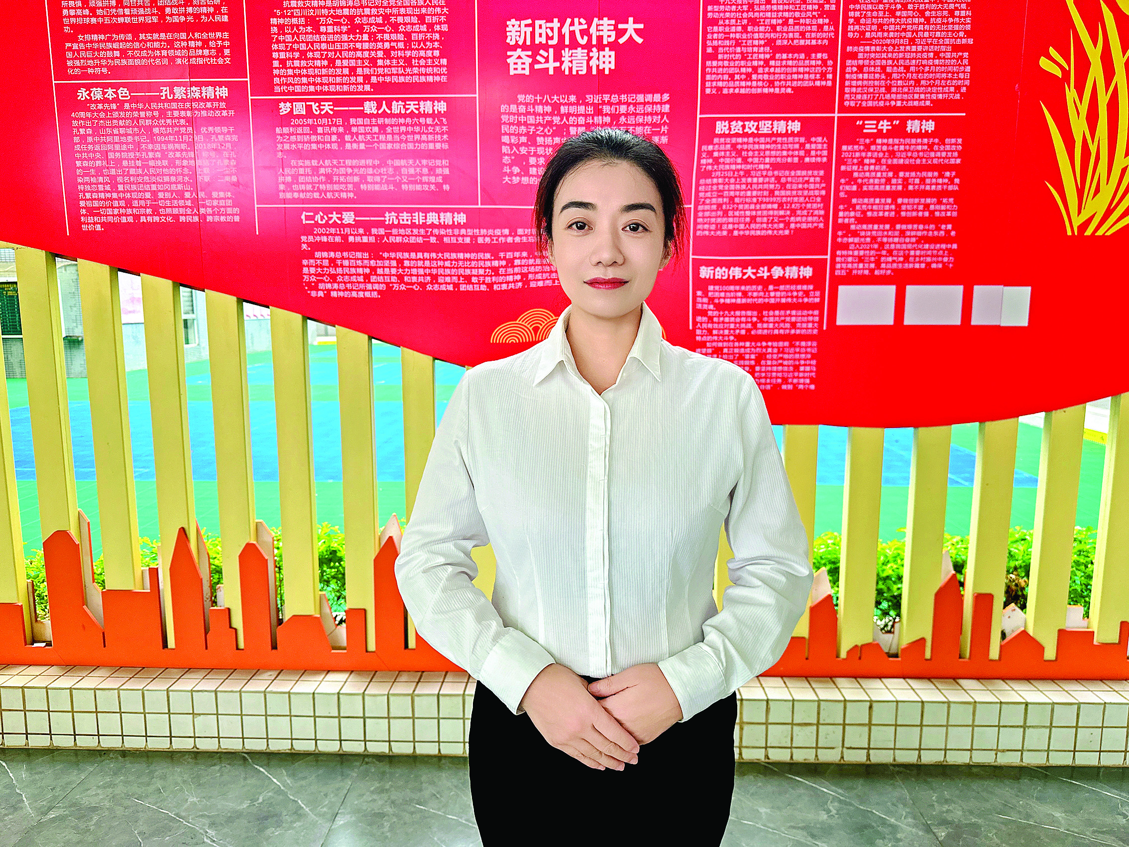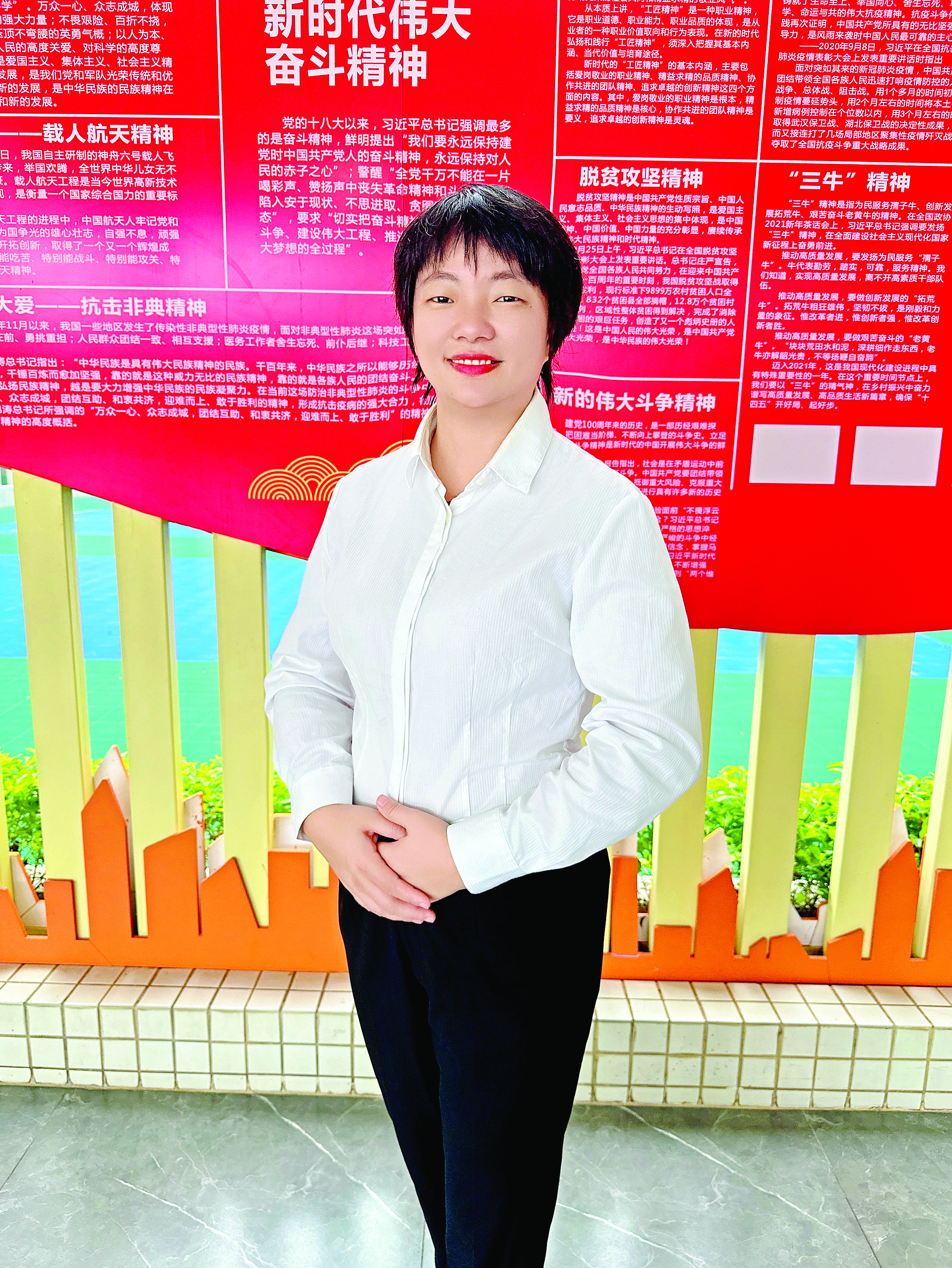 林巧不僅是一名美術(shù)老師,在行政工作中也亦顯擔(dān)當(dāng)。她具有強烈的事業(yè)心和高度的責(zé)任感,助力學(xué)校行政工作和支持教師專業(yè)發(fā)展,保障學(xué)校行政工作順利進(jìn)行。她以無私奉獻(xiàn)與堅定信念,一路耕耘,一路花香。