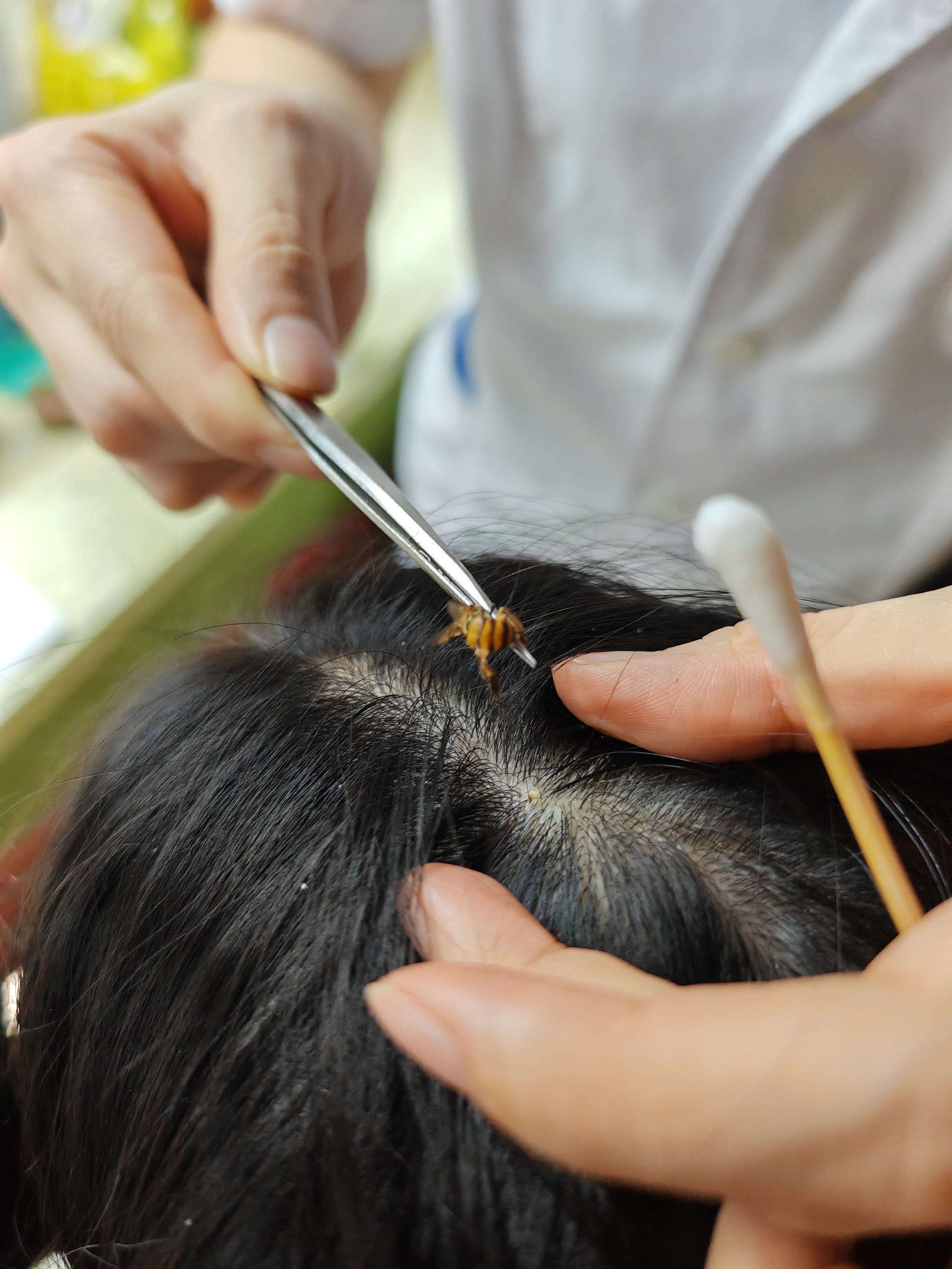 市民在健康夜市上體驗(yàn)自然蜂療。惠州日報(bào)記者周智聰 攝