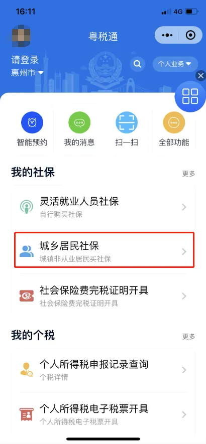。ㄒ唬盎浂愅ā甭窂剑捍蜷_(kāi)“粵稅通”微信小程序→在【我的社保】選擇【城鄉(xiāng)居民社!俊c(diǎn)擊【城鄉(xiāng)居民社保費(fèi)清繳】進(jìn)行繳費(fèi)。