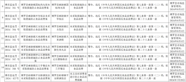 此外,博羅縣長寧鎮(zhèn)友家早餐店、博羅縣麻陂鎮(zhèn)開華飯店、博羅縣麻陂鎮(zhèn)國標(biāo)肉丸館、博羅縣麻陂鎮(zhèn)天來酒樓等9家餐飲店則均因未采取措施防止食品浪費(fèi)的行為被立案查處。以開華飯店為例,執(zhí)法人員在檢查中發(fā)現(xiàn),企業(yè)未在經(jīng)營場所醒目位置張貼或者擺放反食品浪費(fèi)標(biāo)識(shí),服務(wù)人員也未主動(dòng)對消費(fèi)者進(jìn)行防止食品浪費(fèi)提示提醒,引導(dǎo)消費(fèi)者按需適量點(diǎn)餐,從而被認(rèn)定為存在未采取措施防止食品浪費(fèi)的違法行為,均被給予警告處罰,責(zé)令企業(yè)進(jìn)行整改,倡導(dǎo)節(jié)約用餐,反對飲食浪費(fèi)。