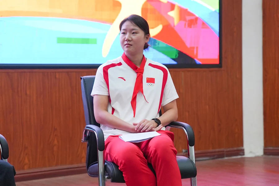 1988-1990 年連續(xù)三年世界賽艇錦標(biāo)賽女子輕量級四人單槳無舵手2000米冠軍曾美蘭,2012年倫敦奧運(yùn)會跳水冠軍、廣東省青少年體育聯(lián)合會副會長張雁全,2024年巴黎奧運(yùn)會跆拳道混合團(tuán)體賽(表演項(xiàng)目)金牌張夢宇等奧運(yùn)冠軍來到現(xiàn)場,和學(xué)生們“面對面”,講述關(guān)于夢想、挑戰(zhàn)與超越的動人故事。
