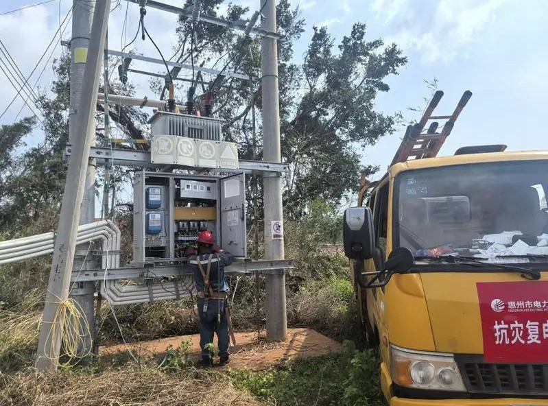 在出發(fā)前,惠州市電力發(fā)展有限公司安全監(jiān)管部副經(jīng)理陳文科一邊收拾著工器具,一邊望著眼前重新立好的桿塔,他說道:“這次臺風(fēng)是有史以來登陸我國最強的秋季臺風(fēng),對電網(wǎng)線路、設(shè)備造成了嚴(yán)重破壞,現(xiàn)場搶修的難度比一般臺風(fēng)大得多,但我們的施工隊伍也曾經(jīng)歷過‘威馬遜’‘彩虹’等重大臺風(fēng)的搶修任務(wù),具有專業(yè)、豐富的現(xiàn)場經(jīng)驗,這幾天我們安全、高效的完成了工作任務(wù),竭盡全力恢復(fù)了災(zāi)區(qū)群眾的用電!