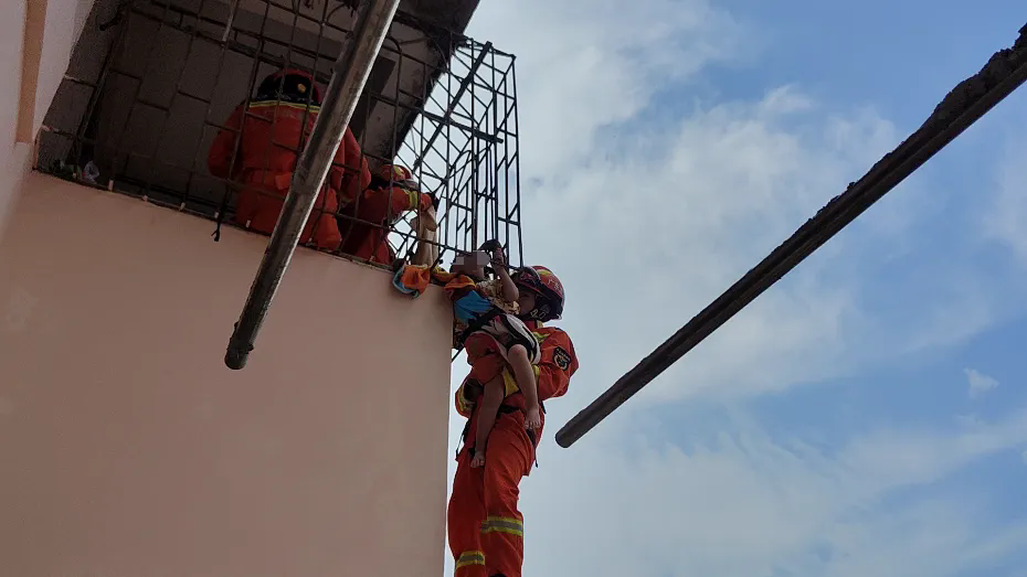據(jù)了解,小孩因一個(gè)人在家中貪玩,爬到陽臺(tái)防護(hù)窗上,腳滑導(dǎo)致卡在鐵欄上無法動(dòng)彈。