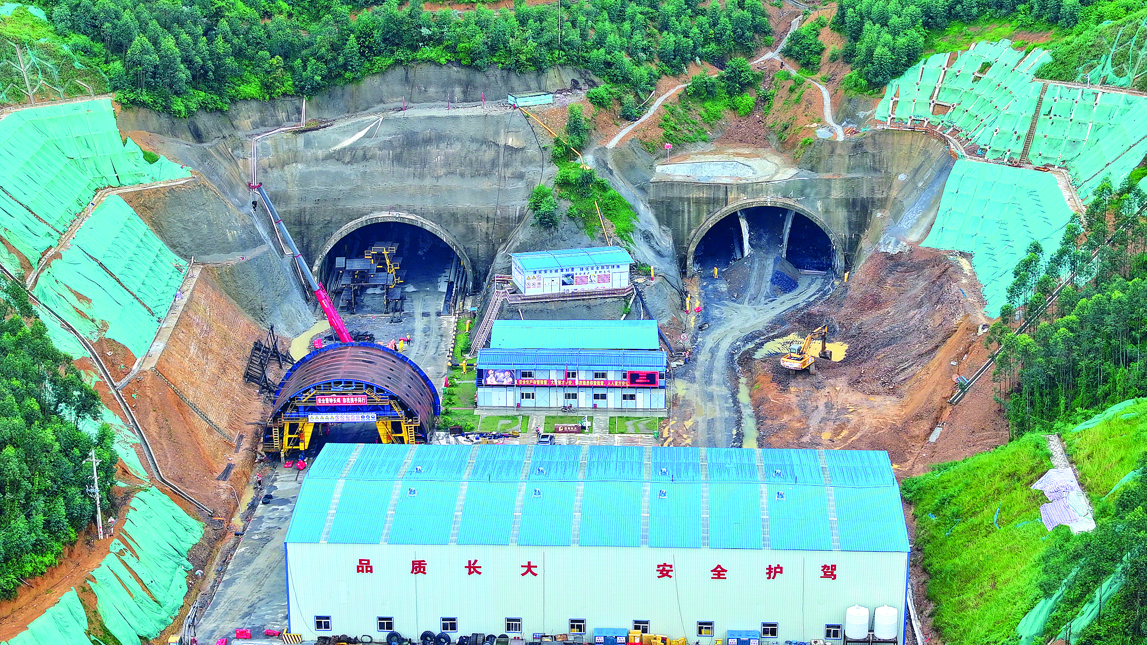 惠肇高速觀洞隧道進(jìn)口施工現(xiàn)場;菡馗咚伲ɑ葜荻危╉(xiàng)目企業(yè)臨時(shí)黨支部供圖