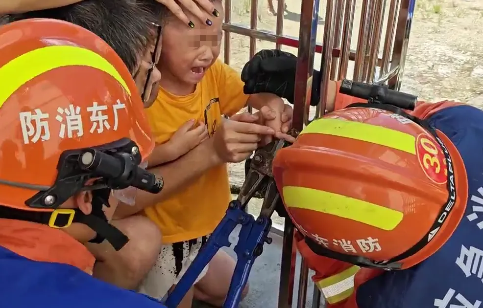 現(xiàn)場消防員發(fā)現(xiàn),男童手指卡在金屬鎖孔內(nèi),被不銹鋼外殼完全包裹,外側(cè)無法觀察受傷情況,給救援帶來了一定難度。