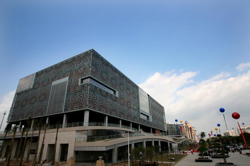 惠州博物館外觀設(shè)計象征“歷史之印”,大量使用先秦時期東江流域出土的陶器網(wǎng)格紋元素作為裝飾,厚重而典雅。